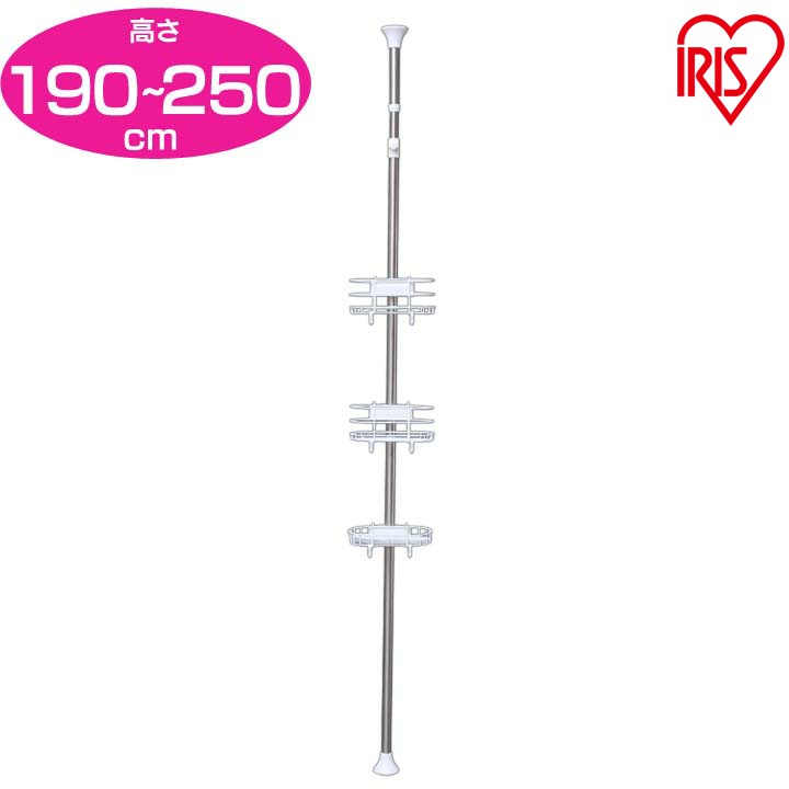 ●商品サイズ(cm)【本体】幅約22×奥行約17.8×高さ約190〜250※ヘッダー含まず(ヘッダー高50mm)【かご内寸】深型:幅約20.8×奥行約10.2×高さ約8.5浅型:幅約20.8×奥行約10.2×高さ約2.8●重量(kg)1.9●かご深型×2個、浅型×1個●フック6個●耐荷重量全体:10kgfかご(深型):3kgfかご(浅型):1kgfフック:0.5kgf●材質ポール:ステンレス、ステンレス巻きスチールパイプ樹脂部:ABS、PP、ポリプロピレンかご:スチール(PEコーティング)◇◆こちらもおススメ◆◇ ・ステンレスワイヤーバスケット ミドル アイリスオーヤマ ・ステンレスワイヤーバスケット ワイド アイリスオーヤマ ・ステンレスワイヤーバスケット 浅型 アイリスオーヤマ ・浴室突張りラック BLT-19 アイリスオーヤマ ・浴室突張りラック BLT-25 アイリスオーヤマ ・ステンレス浴室突張りラック BLT-19S アイリスオーヤマ ・ステンレス浴室突張りラック BLT-25S アイリスオーヤマ ・メタルラックキャスター ストッパー無 アイリスオーヤマ ・メタルラックキャスター ストッパー付 アイリスオーヤマ ・メタルラック大型キャスター ストッパー無 アイリスオーヤマ ・メタルラック大型キャスター ストッパー付 アイリスオーヤマ★
