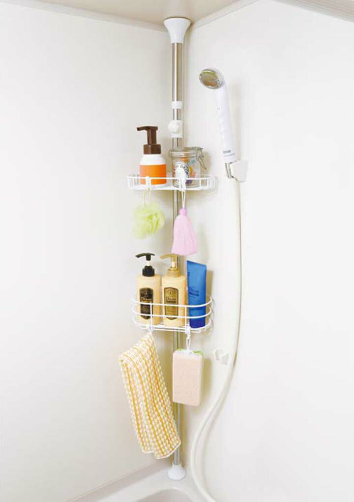 浴室収納の不満を解消するバス用品をスッキリ収納できる突っ張りラックです♪