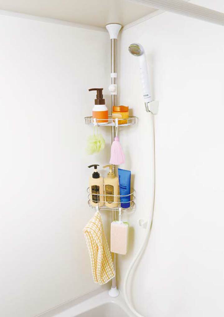 ■商品サイズ(cm)【本体】幅約22×奥行約17.8×高さ約140〜190※ヘッダー含まず(ヘッダー高50mm)【かご内寸】深型:幅約20.8×奥行約10.2×高さ約8.5浅型:幅約20.8×奥行約10.2×高さ約2.8■重量(kg)1.5■かご深型×1個、浅型×1個■フック4個■耐荷重量全体:6kgfかご(深型):3kgfかご(浅型):1kgfフック:0.5kgf■材質ポール:ステンレス樹脂部:ABS、PP、ポリプロピレンかご:ステンレス浴室収納の不満を解消するバス用品をスッキリ収納できる突っ張りラックです♪