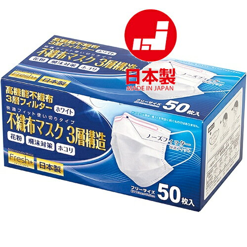 日本製 高機能マスク モースプロテクションマスク レギュラーサイズ 50枚入り【1箱】不織布マスク 使い捨てマスク 99%ウイルスカット 3層構造 国産 正規品 ウイルス 花粉 PM2.5 感染症 対策 送料無料