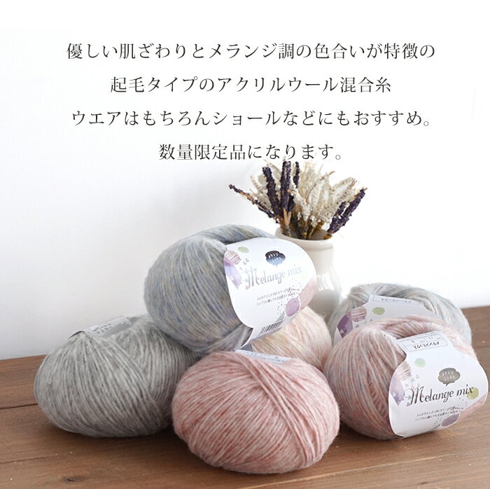 商品カテゴリ:毛糸 編物 編み物 毛 モヘヤ調 並太 25g玉巻 【ピンク】【イエロー】【オレンジ】【ブルー】【グレー】【パープル】レディース ウエア キャップ ショール セリア ごしょうの糸 メランジ調 こちらのページは、<Melange mix(メランジミックス)>です! スタッフ作品のため、編み図の公開はございませんが、参考作品の編み図を画像にて公開いたします(上記の画像をクリックでご覧いただけます) お使いのスマートフォン等の明るさ等の設定により、実物と色が異なって見える場合がございます。