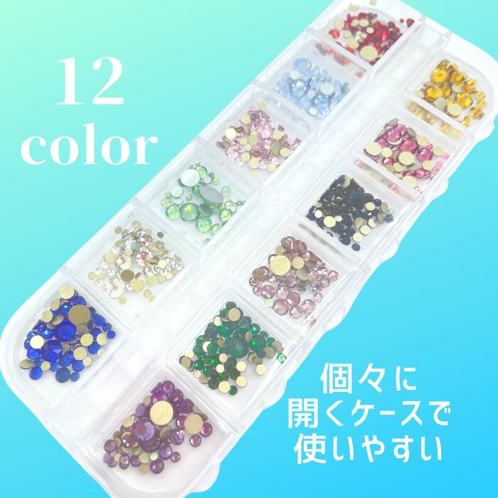 大小さまざまな 12色のラインストーンを詰め込みました♪