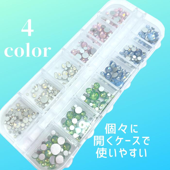 ラインストーン ガラス製 4色セット1mm〜7mm 約350〜450粒 オーロラ ミックス 訳アリ ネイル レジン アクセサリーパーツ ビーズ ライトジュエリー 青 白 ピンク 緑 ハンドメイド