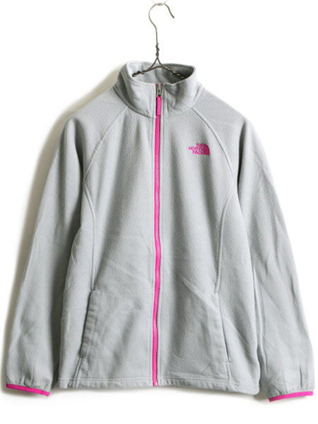 ガールズ XL レディース M 程■ ノースフェイス フルジップ フリース ジャケット 古着 アウター ジャンパー The North Face グレー 灰 薄手| 中古 ノース アウトドア フリースジャケット ジップアップ ハイネック ワンポイント ロゴ 刺繍 キッズ アメカジ ジップインジップ?