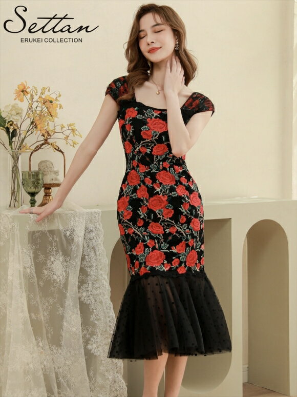【2000円OFFクーポン対象】 エルケイ ERUKEI ドレス S9003 キャバドレス ワンピース ノースリーブ タイト ミニドレス ミモレ丈 ERUKEI ナイトドレス セクシー 花柄 レース 使用 レディース スナック クラブ 女性 大人