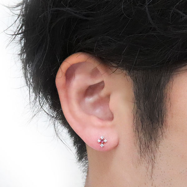 誕生石12石を使用した10金製の、クロス(十字架)モチーフメンズスタッドピアスです。