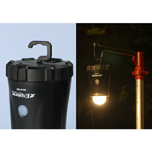 メーカー名:ジェントス株式会社/GENTOS シリーズ名:Explorerシリーズ LEDランタン ●外径(mm):80.2 ●全長(mm):153.3 ●色:黒 ●明るさ:500lm(白色)/300lm(昼白色)/200lm(暖色) ●点灯時間:8時間(白色)/5時間(昼白色)/7.5時間(暖色) ●照射距離:24m(白色)/19m(昼白色)/15m(暖色) ●点灯モード:白色-昼白色—暖色—キャンドルモード—Off ※ボタン長押しで点灯 ●使用電池:専用リチウムイオン充電池3.7V 2,600mAh若しくは単3アルカリ電池×4本 ●充電時間:6.5時間 ●電池寿命:充・放電約300回 ●保護等級:IP66(耐塵・耐水) ●落下耐久:2m ●プラスチック ●専用充電池(EX-41SB)、ハンガーフック、マイクロUSBケーブル(50cm) ●光を直接目に当てないで下さい。